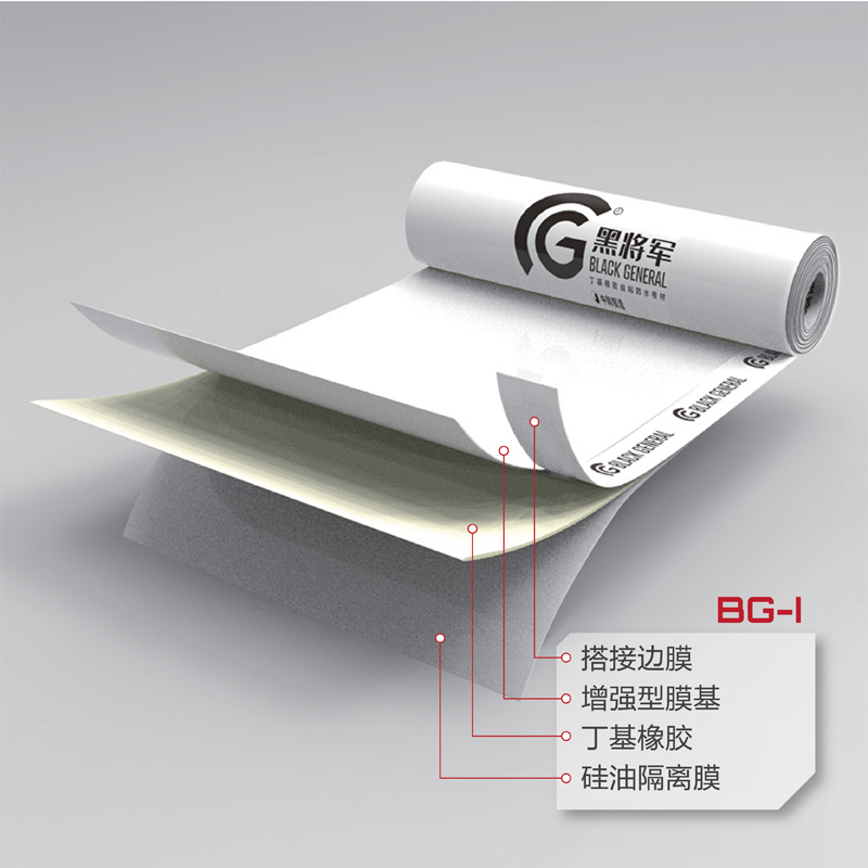 BG-I 丁基橡膠地鐵管廊專用自粘防水卷材是以增強型膜基為覆面材料,以丁基橡膠為粘結材料,并覆以隔離材料而組成的本體自粘防水卷材??刹捎米哉郴驖皲伔ㄊ┕?。